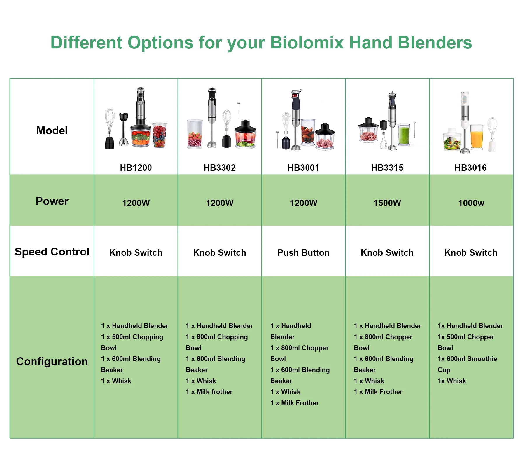Engineered in Germany and built with quality in mind, the powerful hand blender can be used to make delicious treats such as salsa, pesto, pancake and batter, smoothies, cheese sauce, homemade tomato sauce, hollandaise sauce, whipped cream, apple butter, various Indian dishes, soups and cakes. Can also be used for milk frothing, whisking, chopping and making cocktails and much more!