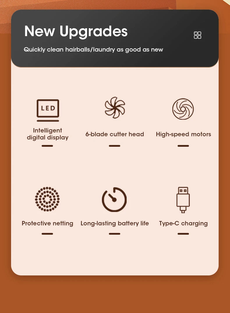【Efficient and Durable Lint Remover】- Powered by a powerful motor at 8000 rpm, it cuts 132000 times per minute without damaging clothesThe 6-leaf precision steel blade efficiently removes lint and small hair balls, flexibly fits clothing, and works without blind spots.